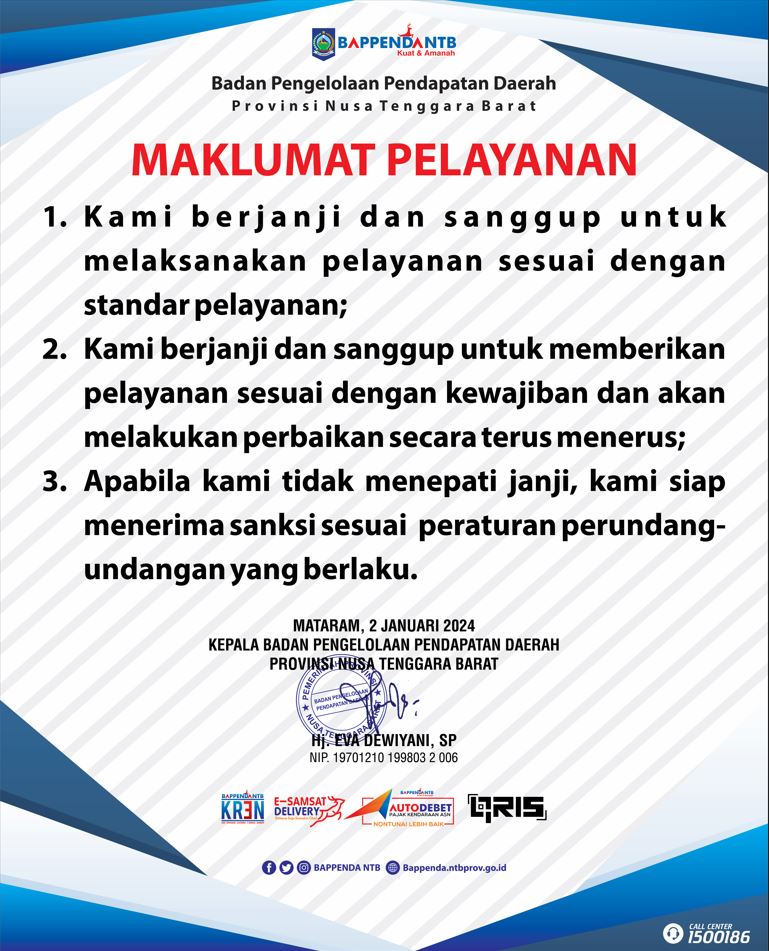 Kepada seluruh masyarakat yang telah memenuhi dan melaksanakan kewajiban membayar pajak kendaraan sebagai peran serta dalam pembangunan Provinsi NTB